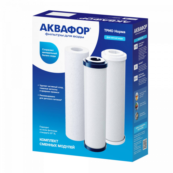 • Комплект сменных модулей глубокой очистки. Оптимален для мягкой воды. В условиях жесткой воды он полностью выполняет функцию глубокой очистки от вредных примесей, однако не снижает минерализацию. Поэтому, если при кипячении на нагревательных элементах образуется белый налет, рекомендуем рассмотреть специализированный комплект с умягчающим модулем для глубокой очистки воды.
