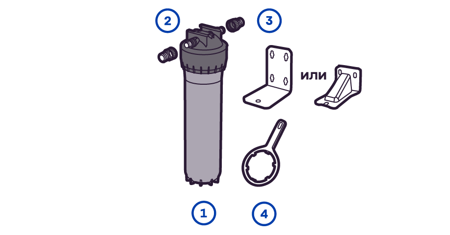 Готовый фильтр состоит из корпуса и картриджа для очистки воды. Если вы приобретаете только корпус, необходимо отдельно купить подходящий к нему картридж: это может быть картридж для механической очистки воды от ржавчины, картридж для глубокой очистки воды от хлора.